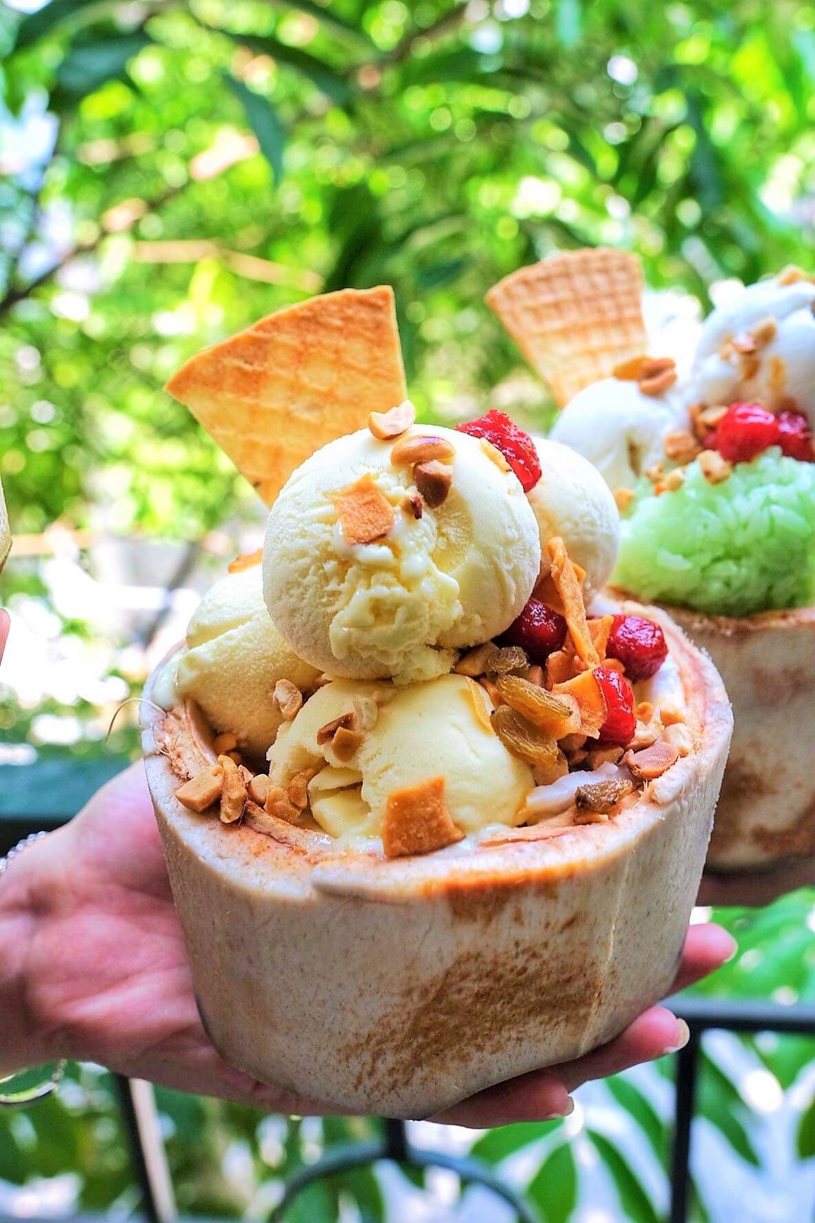 Ngoài việc ăn trực tiếp trái chín, sầu riêng còn được biến tấu thêm trong các món ăn vặt, giải nhiệt, và thời gian gần đây, có một loại kem với hương vị “đặc sản” gần như chỉ có ở Việt Nam rất được lòng giới sành ăn - đó là Kem dừa Sầu riêng - cũng là một trong những món signature tại Kem dừa Côn Đảo Cocoo.