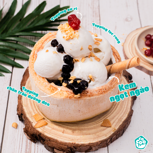 Chị Minh, khách hàng thân thuộc tại Cocoo chia sẻ: "Kem dừa bên đây mịn mịn, là kem tươi chứ không phải kem đá nên mình khá ưng. Kem cũng không quá ngọt nè, ăn kèm với trân châu đường đen là hết sảy. Kem dừa beo béo, trân châu dai dẻo ăn vui miệng mà đỡ ngấy lắm nhé! Dù có order vị gì mình cũng gọi thêm trân châu đường đen vì quá mê."